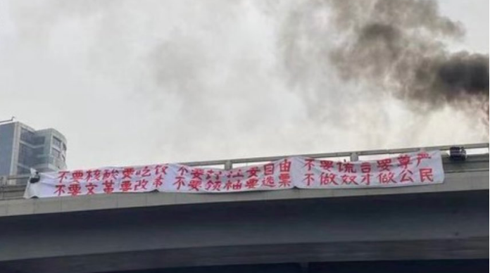我赶紧去到现场。知晓这是为了悼念新疆乌鲁木齐防疫大火死人事件。望平St. 是一条封闭街道,沿河,靠里是连排商铺。此时,警察已经大批进场,将望平St. 里外切割,街里的人群无法出来,街外聚集的人群也无法进入。于是乎,街里街外的人相互呼应,高喊着——不自由,毋宁死!